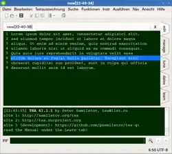 TEA is a graphical text editor for power users. It is designed for low resource consumption, a wide range of functions and adaptability, and is available for all desktop operating systems supported by Qt 6, 5 or 4.6+, thus also OS/2 and Haiku OS. Its user interface is localized in several languages.