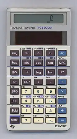 Texas Instruments TI-36 is a series of scientific calculators distributed by Texas Instruments. It currently represents the high-end model for the TI-30 product lines.