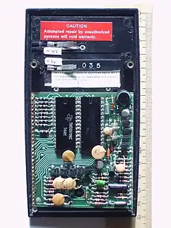 The SR-50 was Texas Instruments' first scientific pocket calculator with trigonometric and logarithm functions. It enhanced their earlier SR-10 and SR-11 calculators, introduced in 1973, which had featured scientific notation, squares, square root, and reciprocals, but had no trig or log functions, and lacked other features. The SR-50 was introduced in 1974 and sold for US$170.[1] It competed with the Hewlett-Packard HP-35.