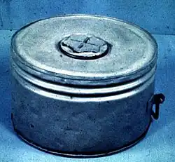 The TM-41 was a circular, metal-cased Soviet anti-tank landmine used during the Second World War. The mines case consisted of a short cylinder with the entire top surface being used as a pressure plate. The mine has a carrying handle on the side of the mine. It was normally painted olive drab and was broadly similar to the larger, later, TM-44 mine.