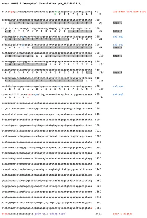 - ^ "transmembrane protein 212 [Homo sapiens] - Protein - NCBI". www.ncbi.nlm.nih.gov. Retrieved 2021-12-18.