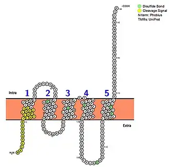 Transmembrane protein 212 is a protein that in humans is encoded by the TMEM212 gene.[5][6] The protein consists of five transmembrane domains and localizes in the plasma membrane and endoplasmic reticulum.[6] TMEM212 has orthologs in vertebrates but not invertebrates.[7][8] TMEM212 has been associated with sporadic Parkinson's disease, facial processing, and adiposity in African Americans.[9][10][11]