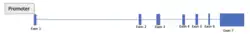 TMEM248 is located at chromosome 7 at location 7q11.21 with 37,327 base pairs, spanning from position 66,921,225 to 66,958,551.[8][9] It has 7 exons and is located on the sense strand.[9][10]