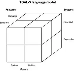 The TOAL-3 is composed of eight sub-tests examining expressive, receptive, and written capabilities in semantic (vocabulary) and syntactic (grammar) areas. It includes written portions of the sub-tests.