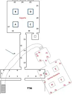 ![]() Floor plan of TT96 | |