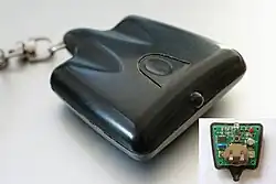 TV-B-Gone is a universal remote control device for turning off various brands of television sets. Released in 2004, its inventor referred to it as "an environmental management device". Although it can require up to 72 seconds for the device to find the proper code for a particular television receiver, the most popular televisions turn off in the first few seconds.