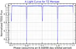 - ^ a b c d e f g h Andersen, J.; Clausen, J. V.; Nordstrom, B. (March 1987). "Absolute dimensions of eclipsing binaries. XII. TZ Mensae". Astronomy and Astrophysics. 175: 60–70. Bibcode:1987A&A...175...60A. ISSN 0004-6361.