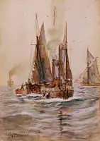 From this time until the beginning of the First World War he was a prolific painter, mainly of ship portraits, though probably his best paintings are those where he was not constrained by the conventions of ship portraiture.[1][2][8]
