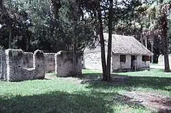 Herbert Eugene Bolton, John Tate Lanning, and other historians believed, from the mid-19th century into the middle of the 20th century, that tabby ruins in coastal Georgia and northeastern Florida were the remains of Spanish missions, even though local residents had earlier identified the ruins as those of late-18th century plantation buildings. The fact that the ruins were of structures built after the establishment of the Georgia Colony by Great Britain was not fully accepted by historians until late in the 20th century.[8] With the exception of St. Augustine and, possibly, a few other important places, Spanish mission buildings were built with wooden posts supporting the roof and walls of palmetto thatch, wattle and daub or planks, or left open.[9][10]