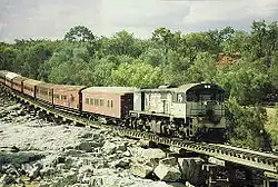 The section of the Etheridge railway line west of Mount Surprise (18°08′48″S 144°19′04″E / 18.1468°S 144.3179°E) was badly damaged by cyclonic rainfall in 1927,[2] and from that time until 1939 the only service was provided by a railmotor which could haul two small goods wagons. The first diesel locomotive used by the Queensland Railways was introduced that year to enable the return of locomotive hauled trains to Forsayth.