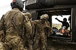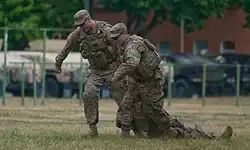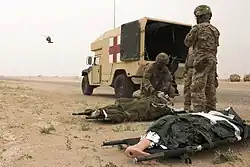 Tactical Combat Casualty Care (TCCC or TC3), formerly known as Self Aid Buddy Care,[1] is a set of guidelines for trauma life support in prehospital combat medicine published by the United States Defense Health Agency. They are designed to reduce preventable deaths while maintaining operational success. The TCCC guidelines are routinely updated and published by the Committee on Tactical Combat Casualty Care (CoTCCC), which is part of the Defense Committees on Trauma (DCoT) division of the Defense Health Agency (DHA).[2] TCCC was designed in the 1990s for the Special Operations Command medical community. Originally a joint Naval Special Warfare Command and Special Operations Medical Research & Development initiative, CoTCCC developed combat-appropriate and evidence-based trauma care based on injury patterns of previous conflicts. The original TCCC corpus was published in a Military Medicine supplement in 1996.[3] TCCC has since become a Department of Defense (DoD) course, conducted by National Association of Emergency Medical Technicians.[4]