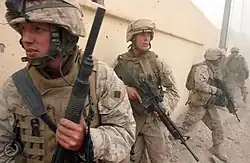 In operations in post-invasion Iraq, US forces used their combat shotguns to clear out suspected insurgent hideouts in house to house fighting.[5] One notable experimental shotgun used in limited numbers during Operation Enduring Freedom is the XM26 for breaching doors or close-quarter battle (CQB).