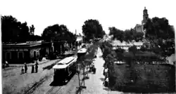 Tacubaya remained a mostly rural suburb of Mexico City until the second half of the 19th century. The urbanization of Tacubaya was a gradual process that occurred from this time until about 1930. This urbanization was the result of both the growth of Tacubaya's population and the growth of Mexico City proper, both of which changed the economic, transportation and political scene here. Community property was dismantled in favor of private property by the Liberals in order to promote economic development. This brought foreign investment which led to the establishment of immigrant communities, mostly of Spaniards. This pushed the indigenous population to the periphery of the municipality. Development of the economy led to the establishment of rail and trolley lines, as well as streets and roads for automobiles. The creation of the Departmento del Distrito Federal eliminated the municipal government structure here, and integrated the area politically with the city. Eventually, Tacubaya became an important commercial center for Mexico City, linking the city with the west of the country.[4] In the early 20th century, the first tall structure of the Mexico City area was built here, called the Ermita Conjunto or Triángulo de Tacubaya, which was at the vanguard architecturally at the time in Art Deco style. For many years, this building housed the Cine Hipódromo and the Teatro Hipódromo. Other major constructions such as El Jardin followed, transforming the formally-rural nature of the area.[3][10]