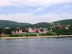 Tadoussac is located in a bay on the north shore of the lower estuary of the St. Lawrence River, at the mouth of the Saguenay River fjord. Tadoussac offers a backdrop of mountains, water, rock and greenery. The village municipality is a point of convergence between the Côte-Nord, Saguenay-Lac-Saint-Jean and Charlevoix.[1] [5]