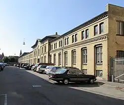 Holger Petersen's former textile manufactury at No. 85 was built in 1883 to design by Johan Schrøder and expanded by Bernhard Ingemann in 1905. The site also includes two terraces of workers' housing from 1885 which were also designed by Schrøder. The entire complex is listed.[2] Bernhard Ingemann has also designed the neighbouring, Neo-Baroque apartment building from 1916 at No. 81.[3]
