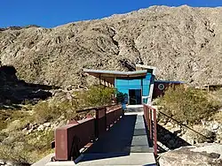 The Agua Caliente Band maintains a visitor center and hiking trail for the canyon. The trail is a two-mile loop which leads to Tahquitz Falls[10] and back.[6]