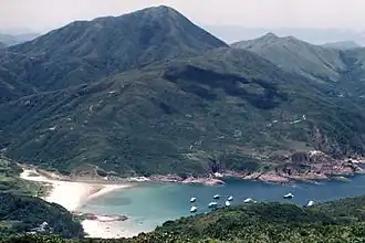 ![]() Tai Mun Shan rising behind the bay of Sai Wan | |