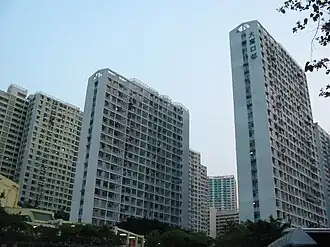Tai Wo Hau is a place in Tsuen Wan across Tsuen Wan District and Kwai Tsing District. Its area mainly includes Tai Wo Hau Estate, Kwai Yin Court, Kwai Yung Court, and private buildings along Texaco Road.[1][2] It also includes Kwok Shui Road (the villages, MTR Tai Wo Hau station, Primrose Hill) at the north of Castle Peak Road.[3][4]