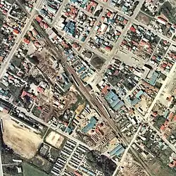 The former rail bridge crossing the Rekifune River to the station was maintained as a pedestrian bridge until the early 2000s, but was demolished by 2010.
