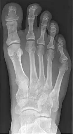 | Radiograph showing a tailor's bunion | |