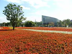 The expo was divided up between four major areas: Yuanshan Park, Taipei Artist Park, Xinsheng Park and Dajia Riverside Park.[4] It has 14 pavilions and occupies an area of 91.8 hectares (0.918 km2).[5] Each area was also covered with many outdoor gardens, including a Global Garden Area (featuring exhibits from the United States, Greece, the Netherlands, Thailand, Bhutan, Hawaii, Belau, Hong Kong, Japan and more), a Fujian-Style Garden, and a Sea of Flowers.[12] In addition, it features more than 800 varieties of orchids, 329 million locally developed plant varieties, and award-winning landscape and gardening designs from 22 countries.[6] The expo was based on several major design concepts:[5][13]