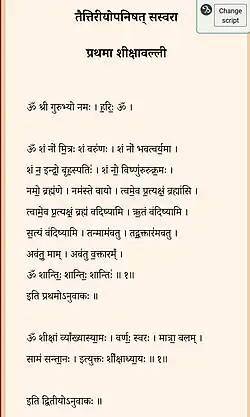![]() Taittiriya Upanishad', verses 1.1 to 1.2, (Sanskrit, Devanagari script