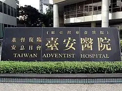 - ^ a b c d Huang, Hui-Ting (January 29, 2020). "Taiwan Adventist Hospital". Encyclopedia of Seventh-day Adventists. Retrieved August 25, 2022.