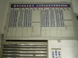 - ^ Taiwan Railway Company LTD. “How One” Taiwan Travel Passport (Taiwan Railways Administration Passenger Schedule), Version 9. Banqiao, Taiwan, January 15, 2010.