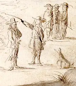The Dutch military presence was concentrated at a stronghold called Castle Zeelandia.[10] The Dutch colonists imported a hunting dog (known as the "Flying Dog" (Traditional Chinese: 飛狗)) to Taiwan and started to hunt the native Formosan sika deer (Cervus nippon taioanus) that inhabited Taiwan. The Dutch East India Company established a trading post whose main business was the export of sika skins to Europe. During the six decades of Dutch activity 2,000,000 to 4,000,000 sika skins were exported to Japan and China,[11][12] contributing to the eventual extinction of the subspecies on the island.[13] The "Flying Dog" was thought to be a Greyhound or an English Pointer.[14]