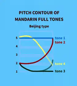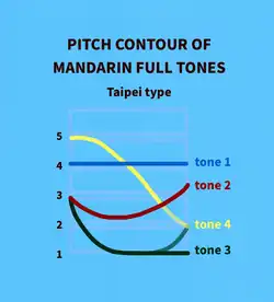 Like all varieties of Mandarin, Guoyu is a tonal language. Putonghua as spoken in the mainland has five tones, including the neutral tone.[76] Tones in Guoyu differ somewhat in pitch and contour.