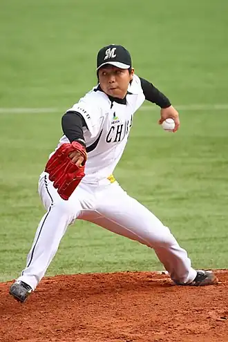 ![]() Matsunaga with the Chiba Lotte Marines | |