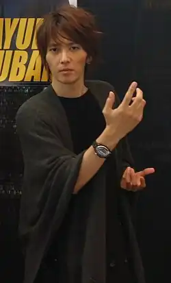 Takayuki Tsubaki (Japanese: 椿隆之, Hepburn: Tsubaki Takayuki; born June 28, 1982) is a Japanese actor and YouTuber best remembered for his role as Kazuma Kenzaki, the protagonist in the tokusatsu series Kamen Rider Blade.