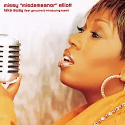 "Take Away" is a song by American rapper Missy "Misdemeanor" Elliott. It was written by Elliott and Timbaland for her third studio album, Miss E... So Addictive (2001), while production was helmed by the latter, with Elliott and Craig Brockman served as co-producers. The downtempo track features guest vocals from R&B singer Ginuwine. While the album version of "Take Away" credits background vocals by 702 member, Kameelah Williams, the single version replaces Williams's vocals with then-newcomer, Elliott's former protégée Tweet.