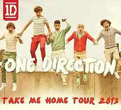 The Take Me Home Tour[2] was the second headlining concert tour by English-Irish boy band One Direction, in support of their second studio album, Take Me Home (2012).[3][4] The tour began on 23 February 2013 in London, England, and concluded on 3 November 2013 in Chiba, Japan. It was announced by member Liam Payne at the BRIT Awards in early 2012, originally billed as the UK & Ireland Arena Tour. In mid-2012, the tour expanded to include North America and Australia following the band's international breakthrough. The tour was documented in the film One Direction: This Is Us directed by Morgan Spurlock.[5]