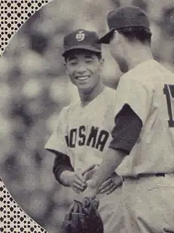 In 1958, three years after he started working, with the help of the manager of his team, he became a professional baseball player for the Hiroshima Carp, a Japanese professional baseball team belonging to the Central League, with the uniform number 29. In 1959, his second year as a professional baseball player, his uniform number was changed from 29 to 1 and he secured a regular position at shortstop. He continued to be a regular player until 1968.
