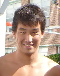 Takeshi Matsuda (松田 丈志, Matsuda Takeshi; born June 23, 1984) is a retired Japanese Olympic, Asian and National Record holding swimmer. He swam for Japan at the 2004, 2008 Olympics, 2012 Olympics, and 2016 Olympics, winning four medals. At the 2008 Olympics, he won a bronze medal in the men's 200 m butterfly in an Asian Record of 1:52.97; in doing so, he also set the Japanese Record in the event. On November 12, 2011, Matsuda set a new Japanese record (1:49.50) at the FINA World Cup for the short course 200 m butterfly. In doing so, he became just the third swimmer in history to break the 1:50 barrier for the event.[2]