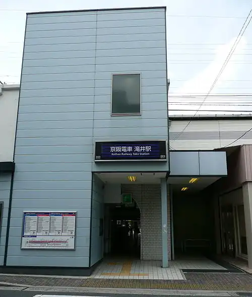 Takii Station (滝井駅, Takii-eki) is a passenger railway station in located in the city of Moriguchi, Osaka Prefecture, Japan, operated by the private railway company Keihan Electric Railway.