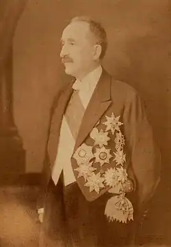 After discussions between Qemali and Prishtina, both concluded that a general revolt was the only solution and that Albania's autonomy should be the ultimate goal, as only then could the long-demanded freedoms and rights be guaranteed.[22] To achieve the goal, they agreed upon meeting at the Pera Palace Hotel, in the Beyoğlu district of Constantinople, where Qemali lived for some time and talked in more detail.[21] The next day the two agreed that in order to achieve the goal they had to seek the support of other Albanian deputies who had the same convictions as them and who could be trusted. It was agreed that the meeting would be held in the form of a Kuvend (lit. 'Assembly') and to make sure that the meeting was as secret as possible and hidden from the authorities. As such, it was decided to hold it at the nearby home of Syrja Bey Vlora, the brother of the former Grand Vizier Mehmed Ferid Pasha and who was also Qemali's first cousin.[23] The event would later be known in Albanian historiography as the "Taksim Plot" because of the location where it was held near Taksim Square.[24] Syrja Bey, a well-known Austrophile, did not hesitate to express differing views from Qemali, so much that opposing factions developed.[25] Although not an MP, Syrja Bey supported the full independence of Albania and did not hesitate to express this view publicly, either in newspaper articles of the empire or through interviews published in the Austrian press. This view was contrary to what the others had opted of obtaining or at least hoped to do so, namely an autonomy under the Ottoman Empire itself, as the fear of opening up many fronts in the Balkans in their view could have costed Albanians territories which couldn't be defended against multiple hostile armies with the support of a Great Power.[26]