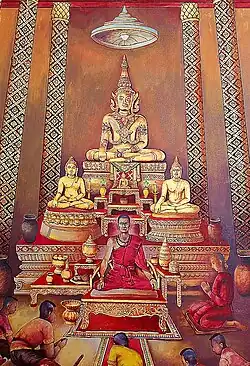 - Chao Phra Fang,[32] a local Buddhist monk, established a theocratic regime at Sawangkhaburi near the northern frontiers. His government included fellow monks who governed alongside him, all dressed in red robes.