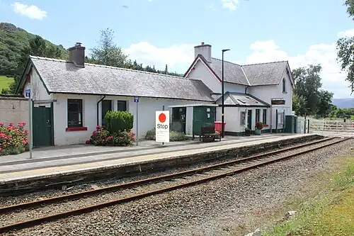 This station is a request stop only for trains running northbound towards Llandudno. Trains running southbound towards Blaenau Ffestiniog are required to stop here so that the crossing keeper can open the manual level crossing gates south of the station.
