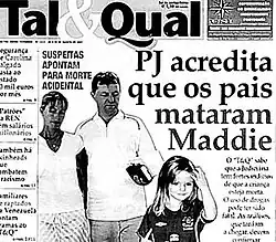 On 31 August 2007, the parents of Madeleine McCann announced that they were suing the newspaper for libel after the newspaper reported that the "police believe" Kate and Gerry McCann killed Madeleine, suggesting she may have died in an accident or from a drugs overdose. The police stressed that the McCanns were not suspects (at the time: they later became so), but Tal & Qual stood by the story.[6] The journalist who wrote the article, Catarina Vaz Guerreiro, said "I can't reveal my source, but I have complete trust in them. I strongly believe that the person that gave us this information is telling the truth."[7]