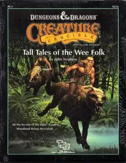 Tall Tales of the Wee Folk is a supplement that describes magical woodland creatures such as brownies, sprites, dryads, leprechauns, centaurs, pixies, fauns, hsiao, pookas, sidhe, treants, wood imps, and woodrakes, and outlines rules for playing them as player characters (PCs).[1][2]