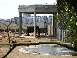 The Elephant House was built in 1989 to celebrate the zoo's 50th birthday. It houses snakes, African elephants, two black rhinos, pygmy hippos, armadillos, and rodents.