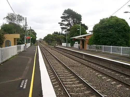 Tallong railway station is a heritage-listed railway station located on the Main Southern line in New South Wales, Australia. It serves the village of Tallong, opening in 1869 as a small halt named Barbers Creek Tank. A platform was opened on 16 April 1878 and it was renamed Tallong on 6 April 1905.[4] It was added to the New South Wales State Heritage Register on 2 April 1999.[5]