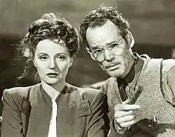 Bankhead earned another Variety award and the New York Drama Critics' Award for Best Performance by an Actress followed her role in Thornton Wilder's The Skin of Our Teeth, in which Bankhead played Sabina, the housekeeper and temptress, opposite Fredric March and Florence Eldridge (husband and wife offstage). About her work in Wilder's classic, the New York Sun wrote: "Her portrayal of Sabina has comedy and passion. How she contrives both, almost at the same time, is a mystery to mere man."[26] She also clashed with Elia Kazan on The Skin of Our Teeth and during rehearsals of Clash by Night she called the producer, Billy Rose a "loathsome bully" who retorted, "How could anyone bully Niagara Falls?"[27]