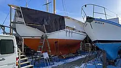 In 2021, Clallam County required Goolden to apply for a conditional use permit, as the location where the boat restoration work was taking place was not zoned for that activity.[18] Goolden settled the dispute with the county, and agreed to move the boat before September 18, 2021.[19] In July 2021, Goolden's Sampson Boat Company and Tally Ho relocated to the nearby Port of Port Townsend, Washington, boatyard to complete the restoration there.[20]