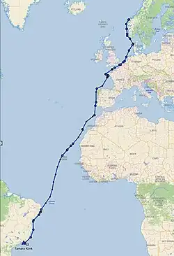 - ^ Comunicação. "Cabanga recepciona Tamara Klink na chegada ao Recife após travessia solitária da Europa" (in Brazilian Portuguese). Retrieved 2022-01-31.