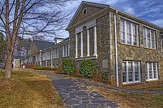 The Tamassee DAR School is a school in Tamassee, South Carolina, founded in 1919 by the Daughters of the American Revolution to serve the underprivileged children of Appalachia.[2][3][4] Historic buildings can be observed on the DAR School campus. The school survives and thrives to this day, consistently graduating classes of children between the ages of 7 and 18.[5] The school gymnasium is named after DAR President General May Erwin Talmadge, who redistributed money to the school from the DAR War Fund following the end of World War II.[6]