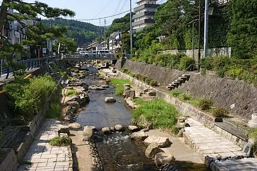 Tamatsukuri Onsen (玉造温泉) is an onsen hot spring located in Tamayu, Shimane Prefecture. The closest large city to the onsen is Matsue, which can be accessed by car, bus, or rail. Tamatsukuri is a noted sulfate spring with water temperatures between 50–70 °C (122–158 °F).[1][2][3]