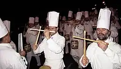Tamborrada of Donostia (in Basque Donostiako Danborrada) is a celebratory drum festival held every year on January 20 in the city of San Sebastián, Spain. At midnight, in the Konstituzio Plaza in the "Alde Zaharra/Parte Vieja" (Old Town), the mayor raises the flag of San Sebastián. The festival lasts for 24 hours.[1] Participants, dressed as cooks and soldiers, march in companies across the city. The celebration ends at midnight, when people congregate at the Konstituzio Plaza and the city flag is simultaneously lowered at various locations.[2]